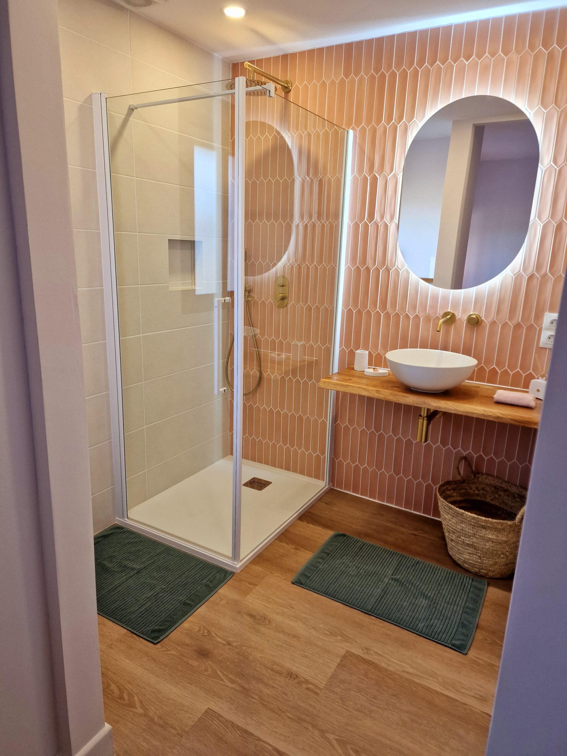 Elke kamer in Casa Mijo bezit over een eigen ensuite badkamer met een regendouche, toilet, lavabo en badkamer artikelen. Vanuit de kamers is het zwembad eenvoudig te bereiken via onze "brug". Zo kan u in alle rust van de kamers naar het zwembad.