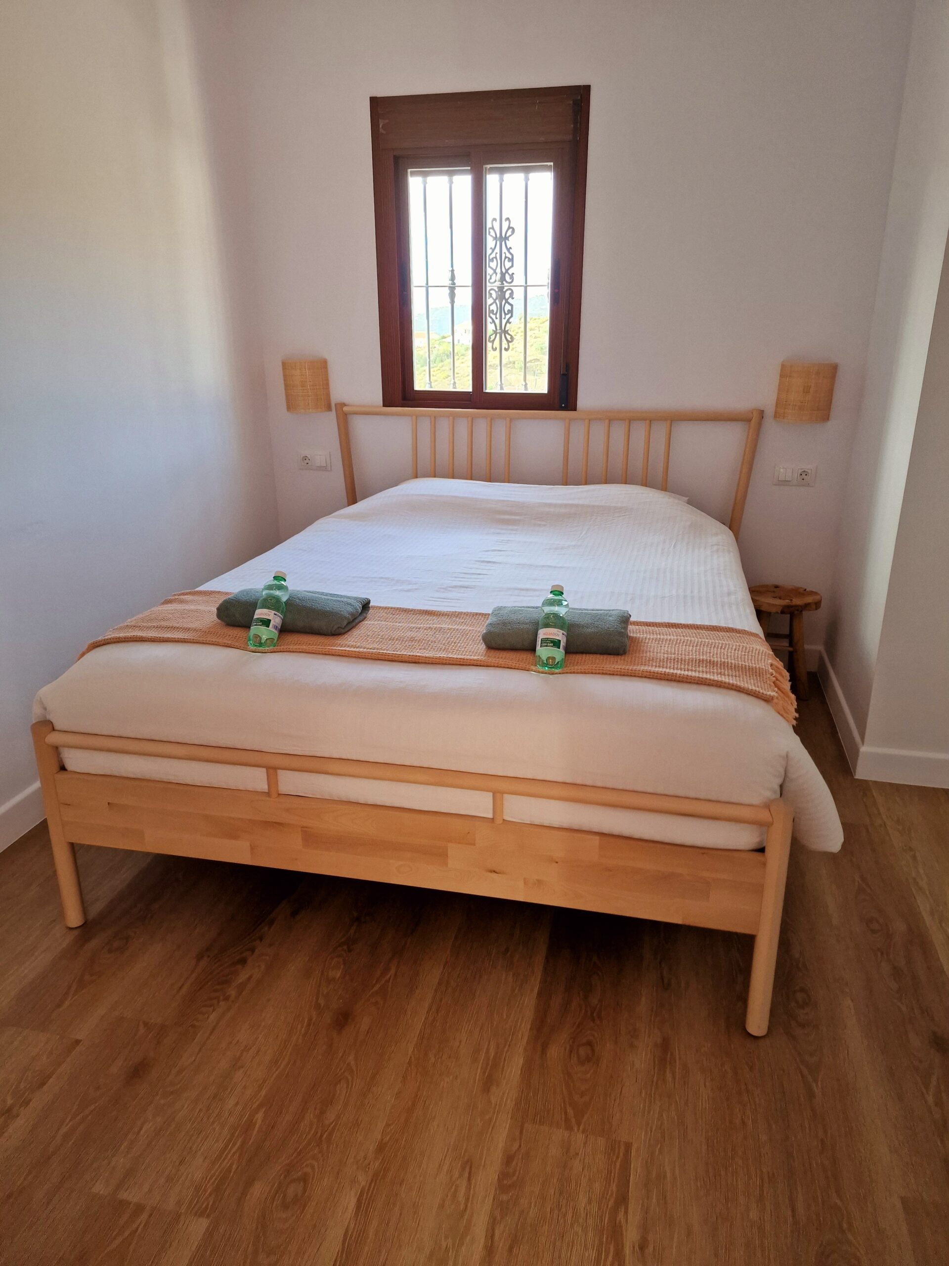 Aan het einde van de hal stap je binnen in onze gezellige Kamer 3. Neem in de ensuite badkamer een verkwikkende douche met een uitzicht op het mooie dorpje Daimalos. Deze kamer met alle comfort die je nodig hebt op vakantie is ook uitgerust met een apart toilet.