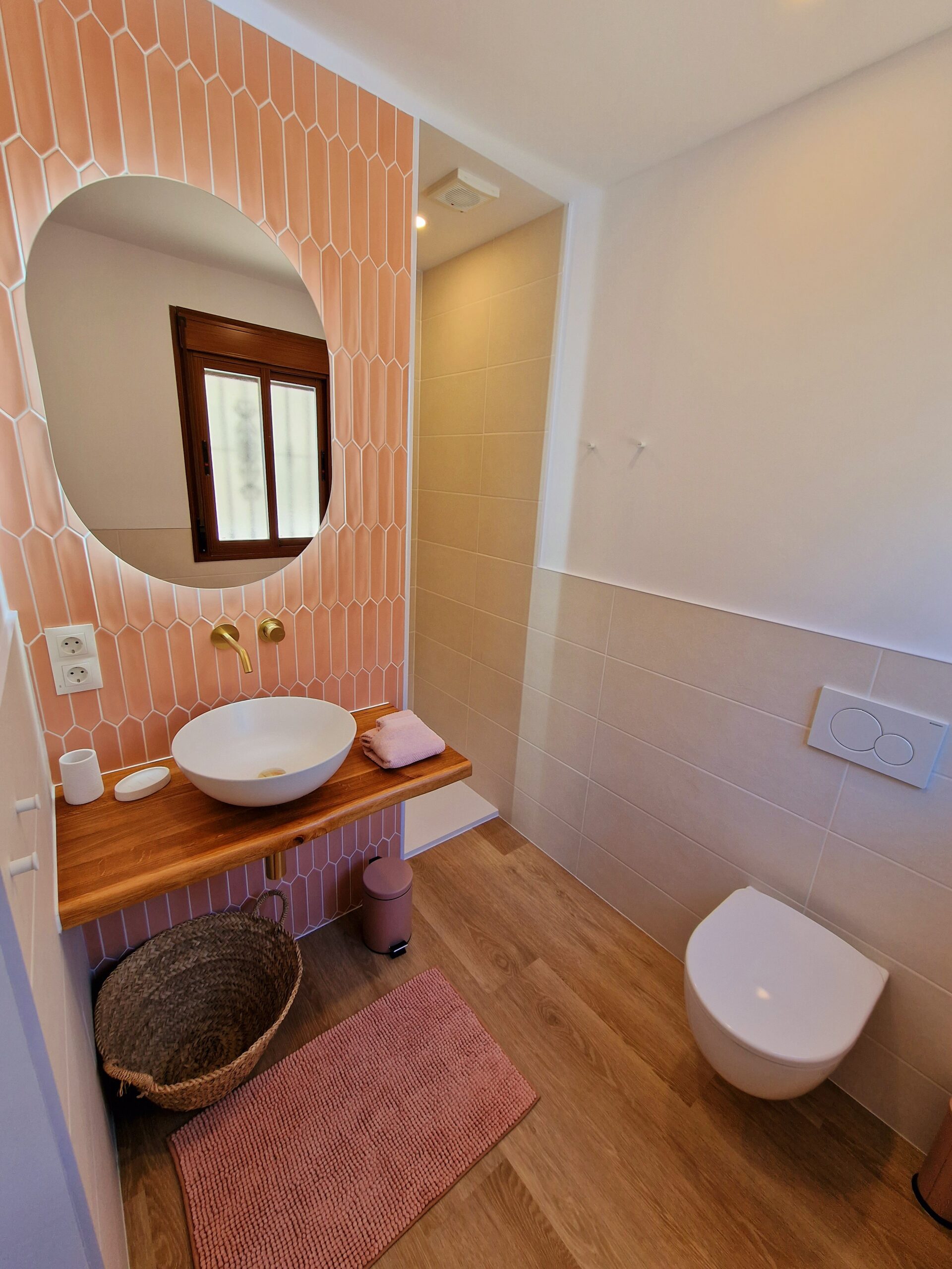 Elke kamer in Casa Mijo bezit over een eigen ensuite badkamer met een regendouche, toilet, lavabo en badkamer artikelen. Vanuit de kamers is het zwembad eenvoudig te bereiken via onze "brug". Zo kan u in alle rust van de kamers naar het zwembad.